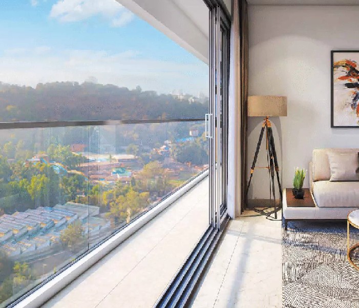 Ceramic tiled flooring, Granite counter top , Single bowl stainless steel kitchen sink with drain board and provisions for water purifier , electric hood , exhaust fan will be provided