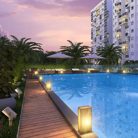 Ceramic tiled flooring, Granite counter top , Single bowl stainless steel kitchen sink with drain board and provisions for water purifier , electric hood , exhaust fan will be provided